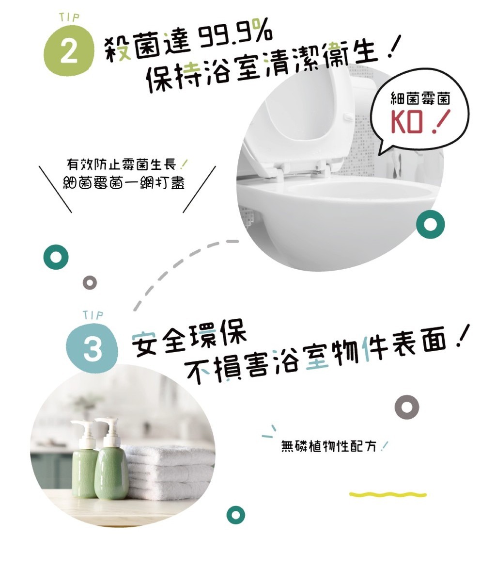 無磷植物性配方不損害浴室物件表面, 安全環保